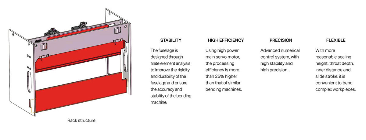 EHP series adopts electro-hydraulic servo synchronous CNC bending machine, adopts electro-hydraulic servo valve double cylinder synchronous control, hydraulic convex EHP series adopts electro-hydraulic servo synchronous CNC bending machine, adopts electro-hydraulic servo valve double cylinder synchronous control, hydraulic convex Hydraulic system adopts integrated control system, imported sealing ring, beautiful and simple appearance; Numerical control system using DELEM DA52 DA56 DA66T numerical control system, Chinese menu graphics display;